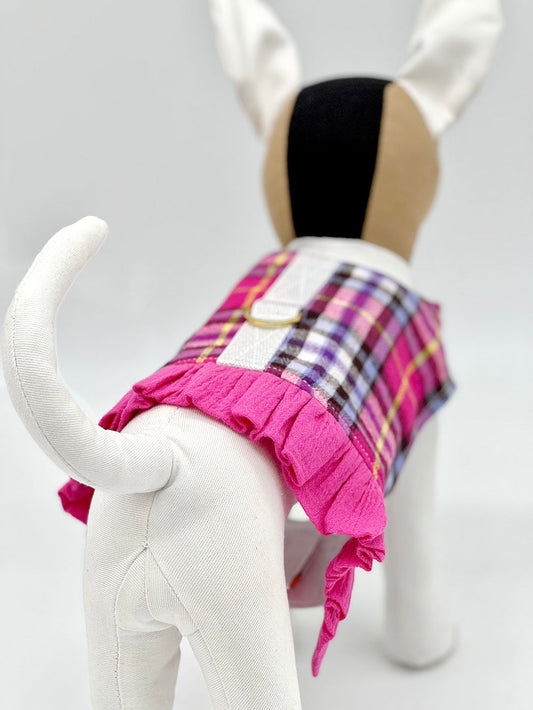 Pink Plaid Harness Vest with Ruffle Trim